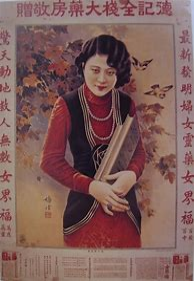 在畫面適當(dāng)?shù)奈恢脴?biāo)有商品、商號(hào)與商標(biāo),并配以中西對(duì)照的年歷或西式月歷,贈(zèng)送給顧客,開始受到大家的歡迎。