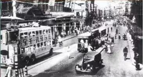 (偽滿的長(zhǎng)春街頭車輛尾部依稀可以看到車身廣告)